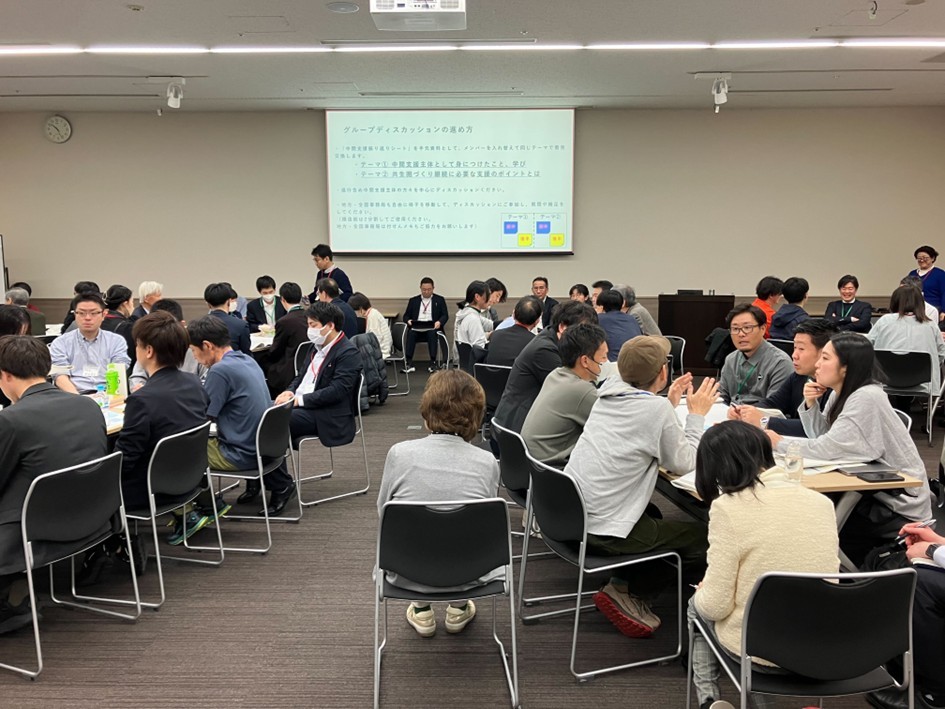 本事業に取り組む中間支援主体が全体・対面で集まる貴重な機会であることから、振り返りのみに終わるのではなく、各団体同士の交流、情報交換を促し、共生圏づくりに取り組む団体同士のネットワーク強化につながることを留意しました。