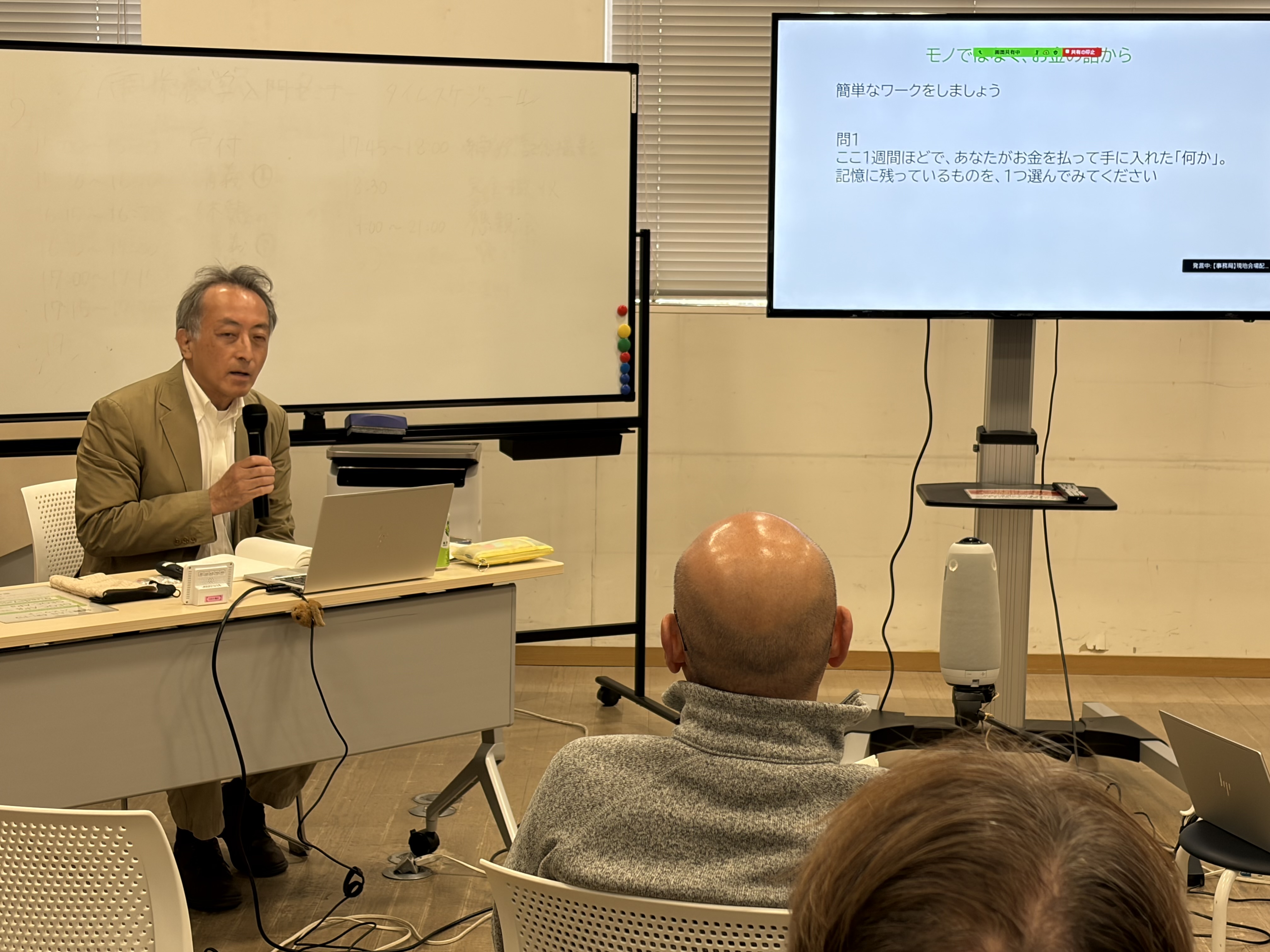 - ミニワーク:「ここ1週間で、お金を払って手に入れたものは何か?」「それは、どこの誰(何)が、どうやって作ったものでしょう?」