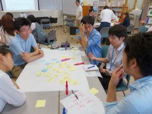 「外部との連携」は、学校組織の中で、どうやって先生が忙しいという問題を解決するか考えたときに、外部に助けてもらう、最終的には先生が話す時間を制限するということを考えたそうです。代わりに外部、例えば企業に先進技術や平和のための話、国際協力等の専門的な話をしてもらうことで、先生の負担も減って、子ども、企業、地域、先生みんなが学べるようになる、という提案です。