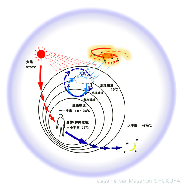 これまでのセミナー同様、熱力学(エクセルギー)の考え方に加えて、バイオクライマトロジー、時間デザインという軸を加えて、改めて、建築環境デザインのありかたを考えていきたいと思います。今期は1回(第何回目になるかは未定)、宿谷さんのご自宅マンションの断熱改修についてもご紹介いただく予定です。また、具体的な建築環境設計の手法をめぐる参加者の皆さんとのディスカッション(断熱・遮熱による放射環境の調整、そして通風、今までとは異なる小さなアクティブ型暖房・冷房方式の可能性etc.)も、これまで同様、時間をとっていく予定です。