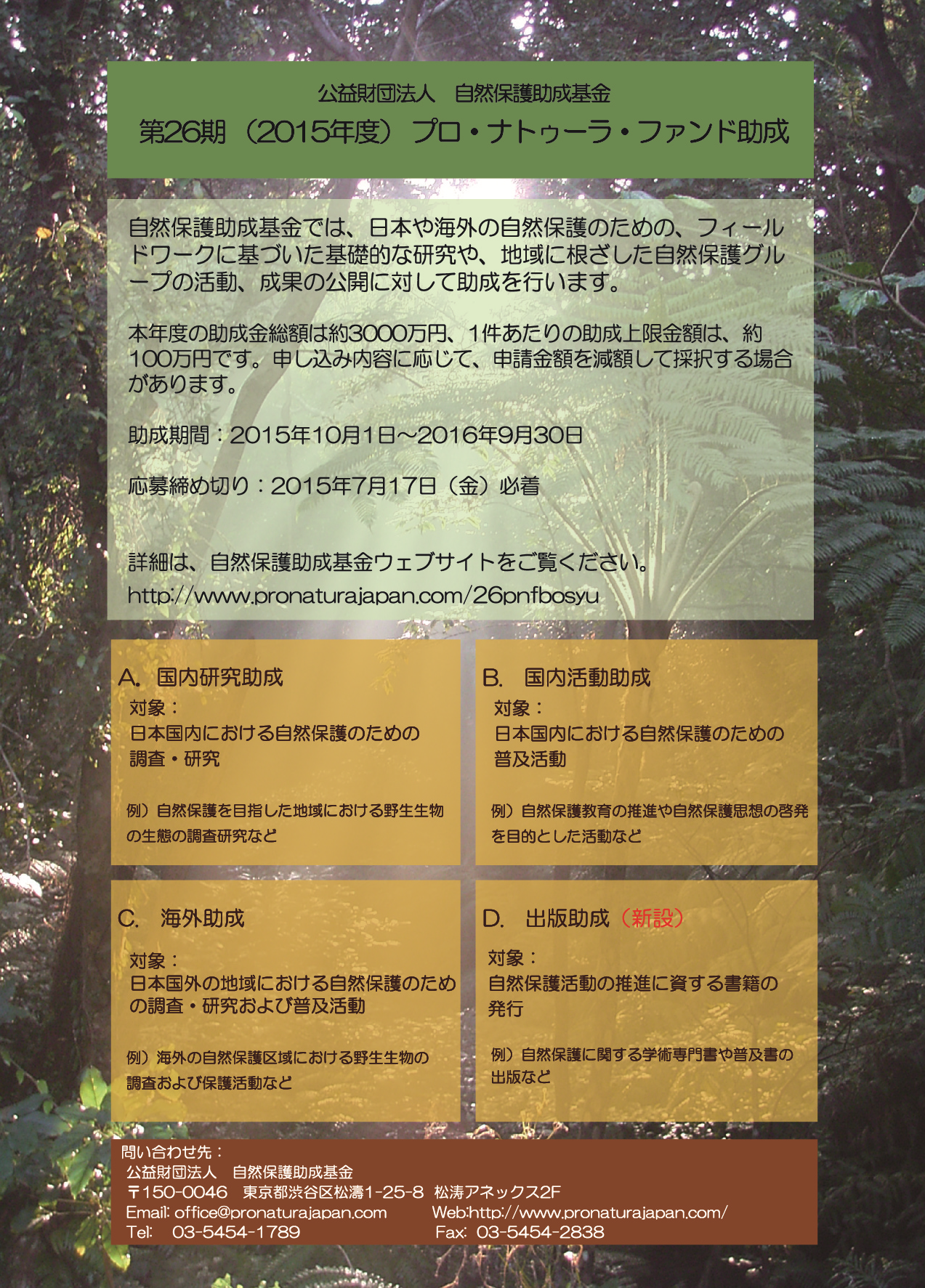 第26期(2015年度)プロ・ナトゥーラ・ファンド 国内研究助成