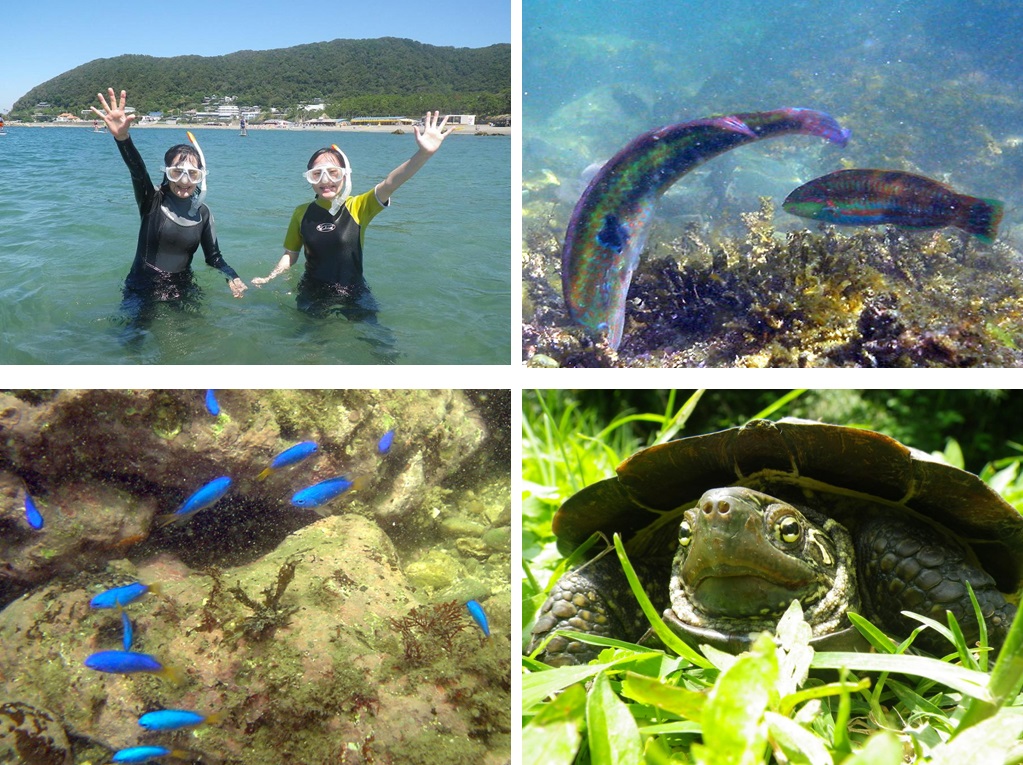 都心から気軽に行ける距離にありながら、豊かな海と自然が残る葉山をベースに、シュノーケリング教室や、自然体験プログラムの講師をしている大嶽氏。