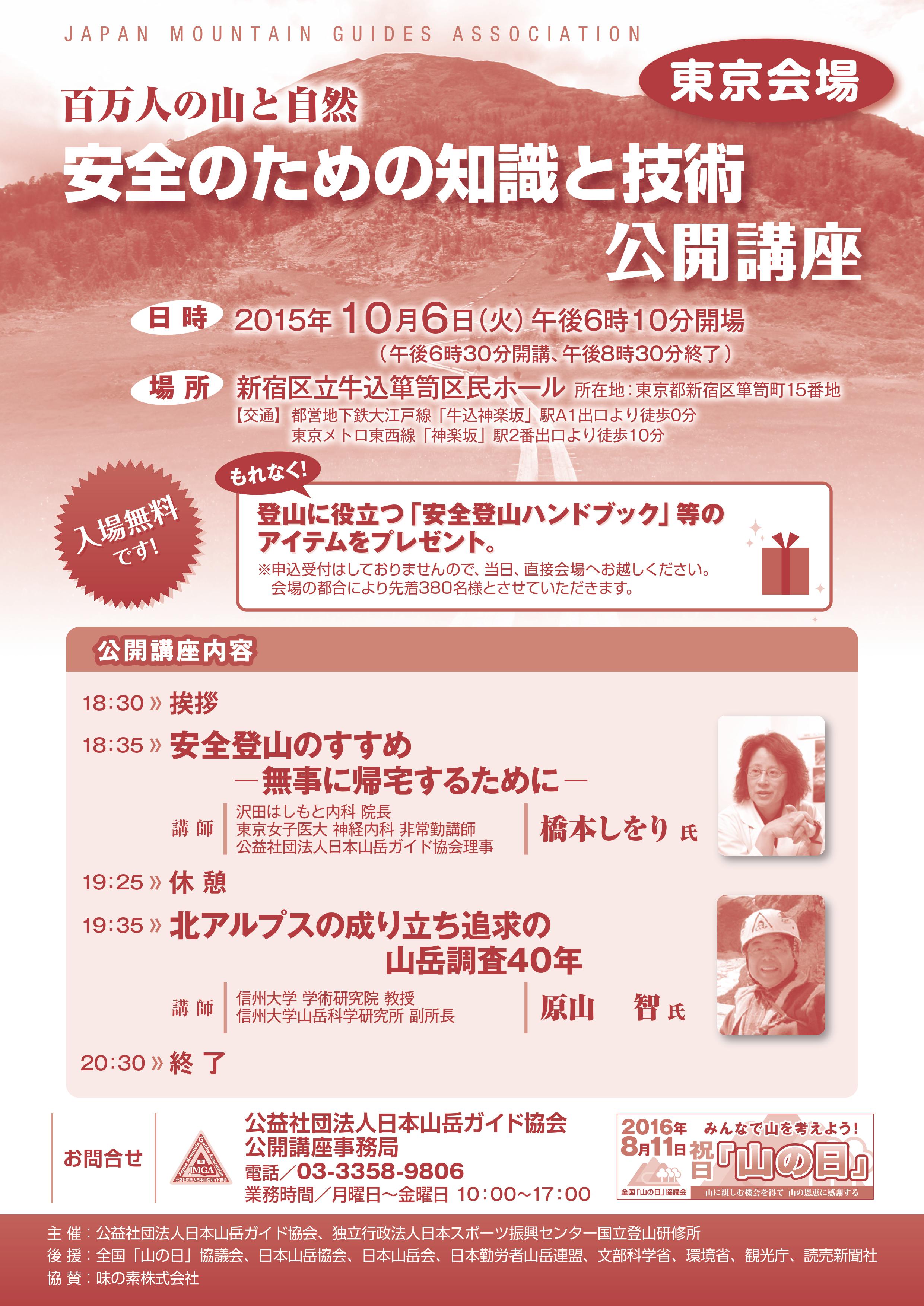 百万人の山と自然 安全のための知識と技術 公開講座 東京