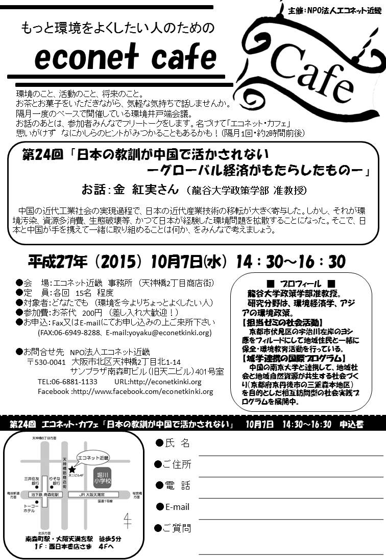 第24回エコネット・カフェ「日本の教訓が中国で活かされない――グローバル経済がもたらしたもの――」