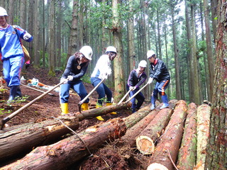 10:00 林業体験(木材搬出、材積計測、積込みなど)・・・(3)