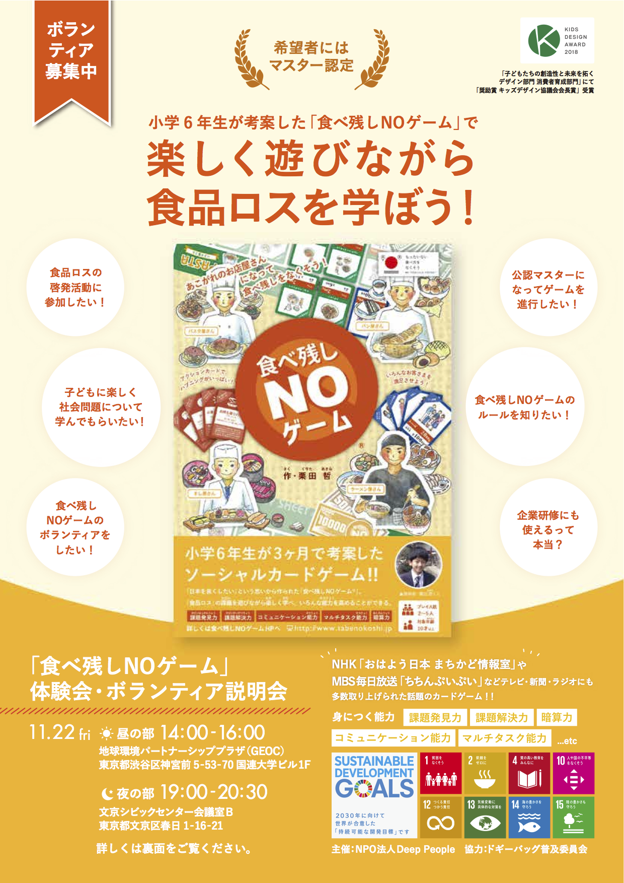 小学6年生が考えた「食べ残しNOゲーム」体験会 <ボランティアも募集中!>