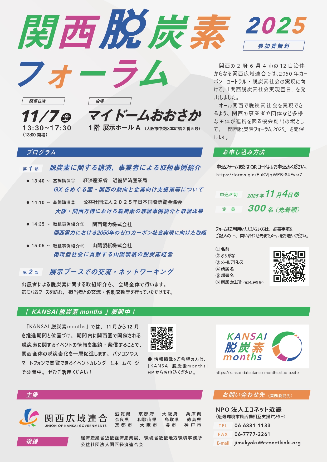 9月9日に、「関西脱炭素フォーラム2025」の参加者募集を開始いたしました。