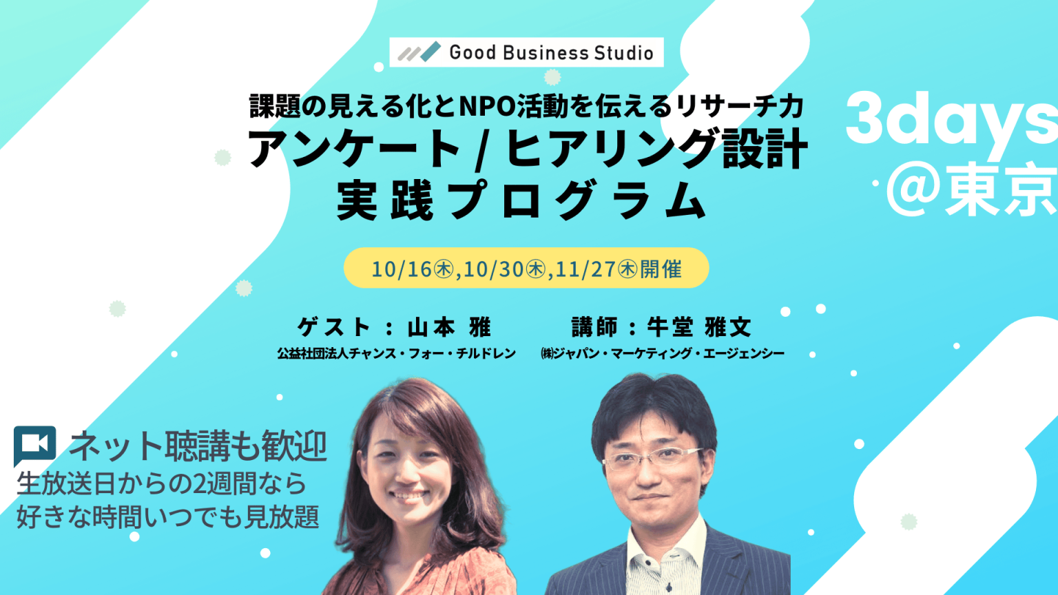 課題の見える化とNPO活動を伝えるリサーチ力「アンケート / ヒアリング設計」実践プログラム