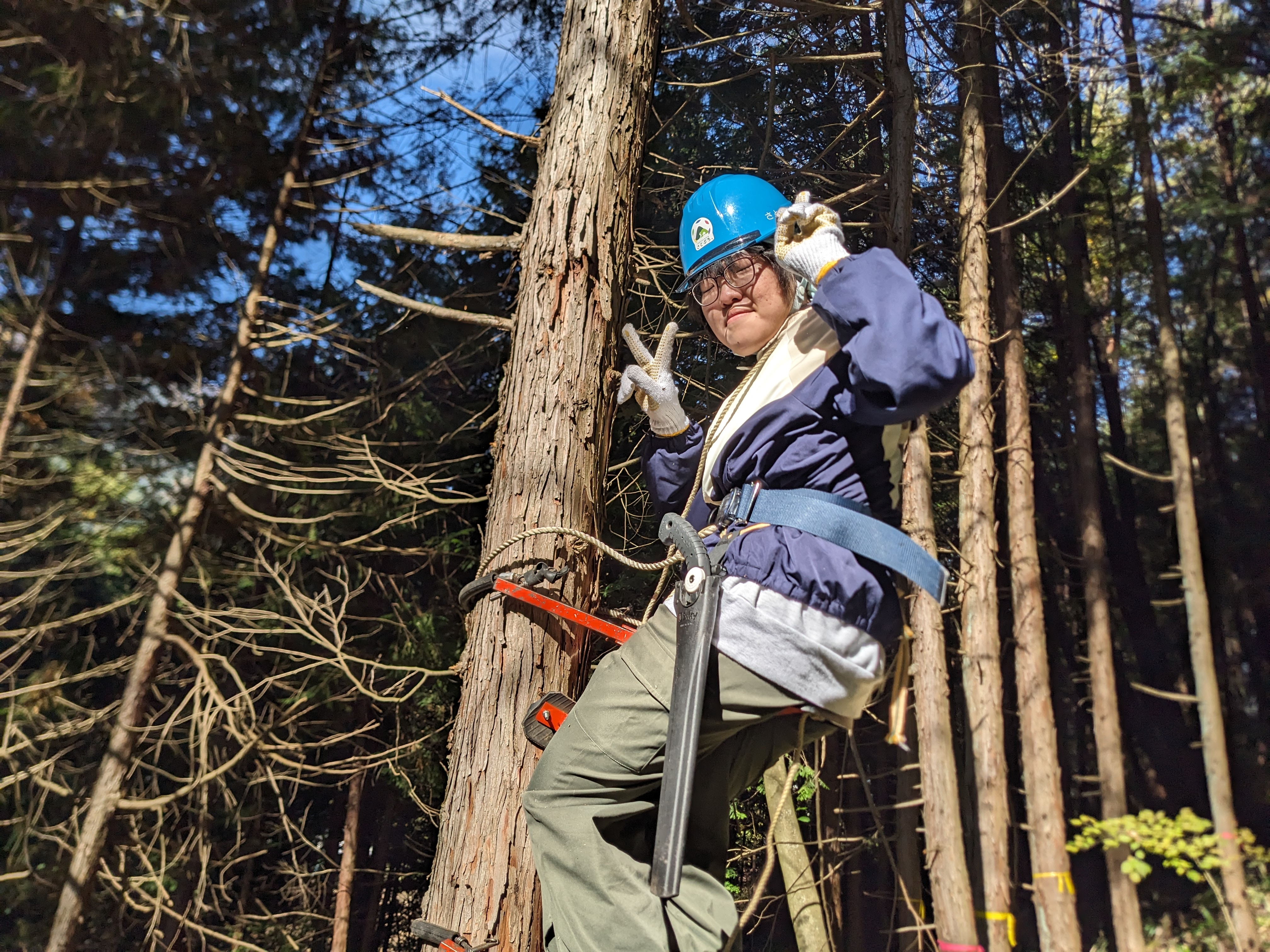 【内 容】◇枝打ち作業(誰でも安全に高所作業ができる木登り椅子「与作」登場! )