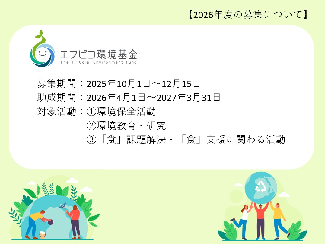 ホームページ:https://www.fpco.jp/esg/environmenteffort/environmentalfund/environmentalfund_recruitment.html