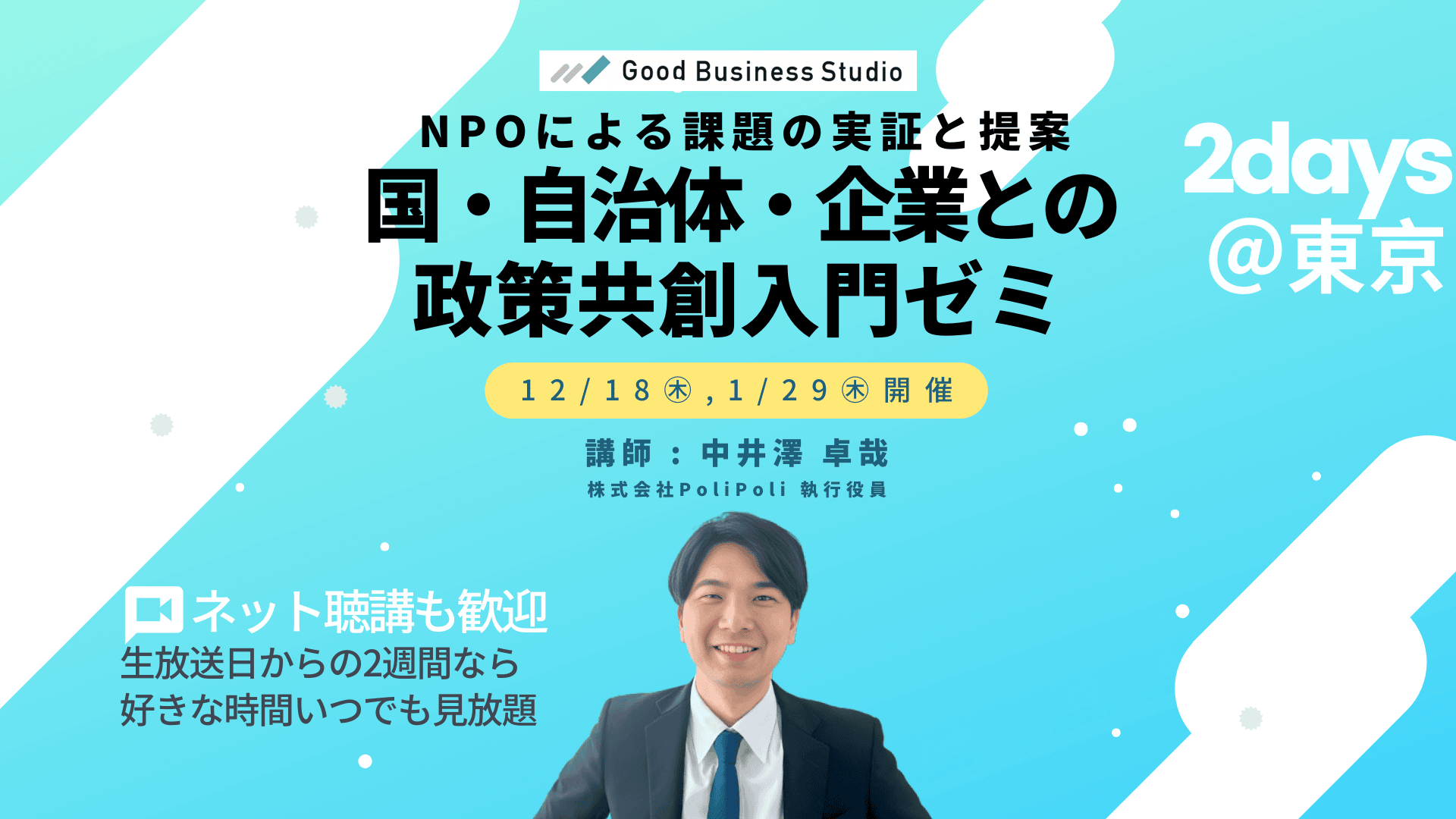 【12/18から全2回開催】NPOによる課題の実証と提案「国・自治体・企業との政策共創」入門ゼミ