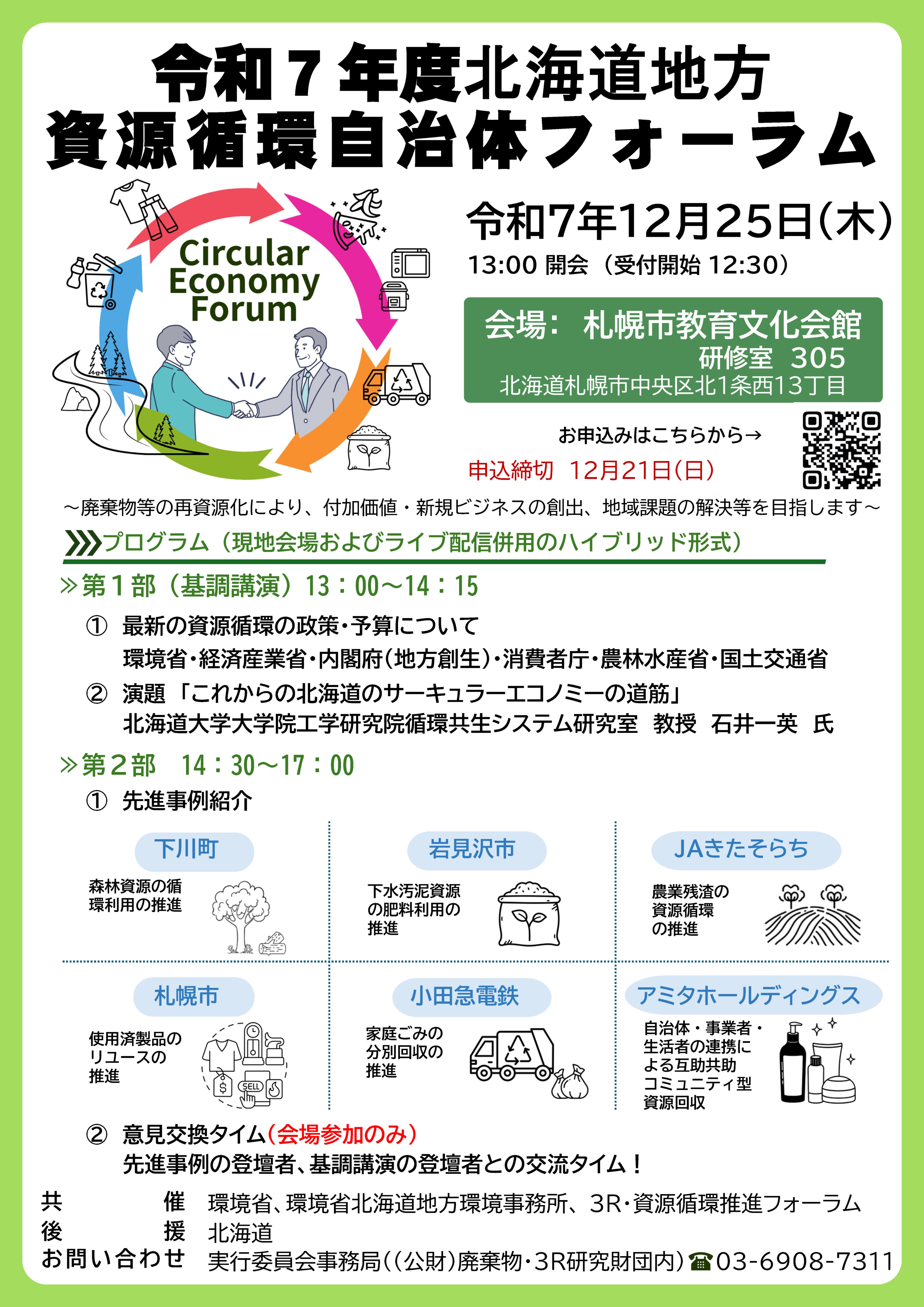 共催:環境省、環境省北海道地方環境事務所、 3R・資源循環推進フォーラム