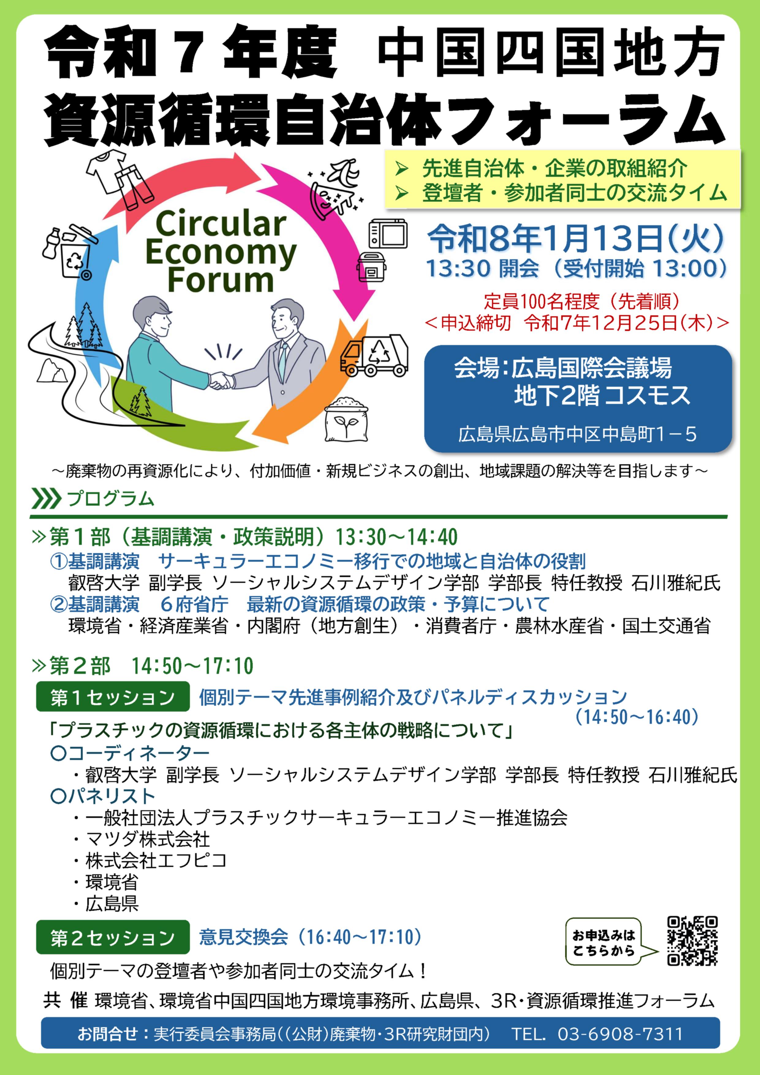 フォーラムへの参加を希望する方は、資源循環自治体フォーラム特設サイトから令和7年12月25日(木)までにお申込みください(ライブ配信含む)。