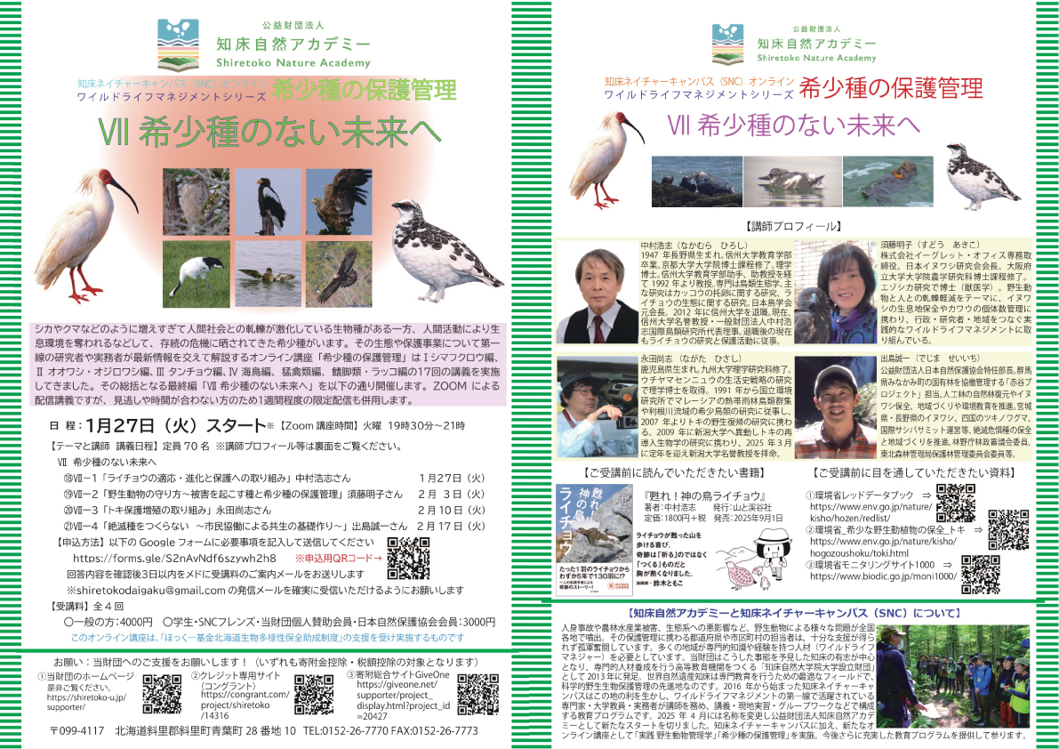 オンライン講座「希少種の保護管理 Ⅶ 希少種のない未来へ」