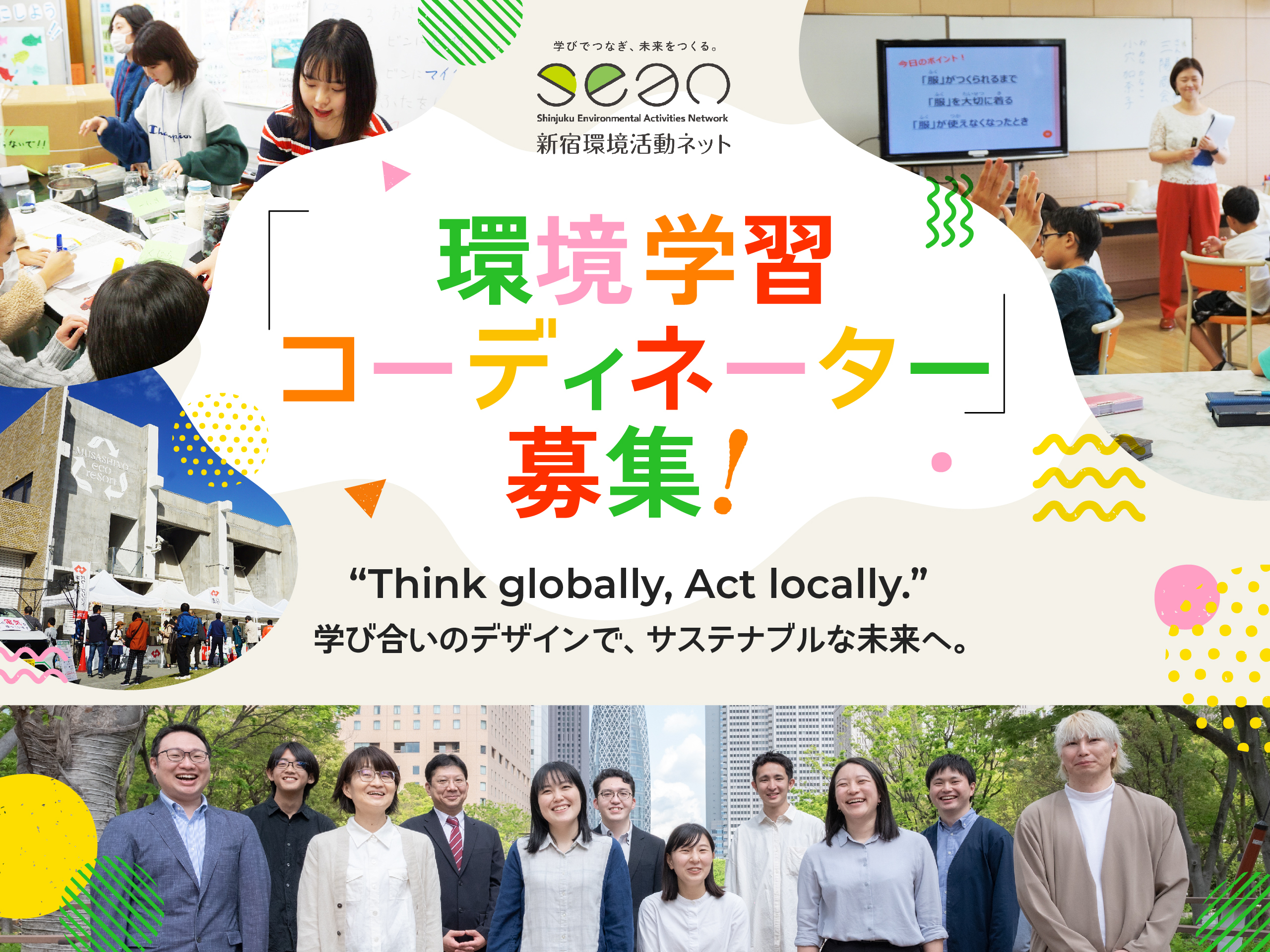 この度、私たちの展開する事業運営を担っていただく「環境学習コーディネーター」を募集します。新卒/経験者採用、どちらも大歓迎です。サステナブルな未来を担う人材育成や地域づくりに携わりながら、ともに成長し続けていきましょう。新宿発祥の活動をより一層広げていくために、仲間に加わってください。ご応募をお待ちしています!