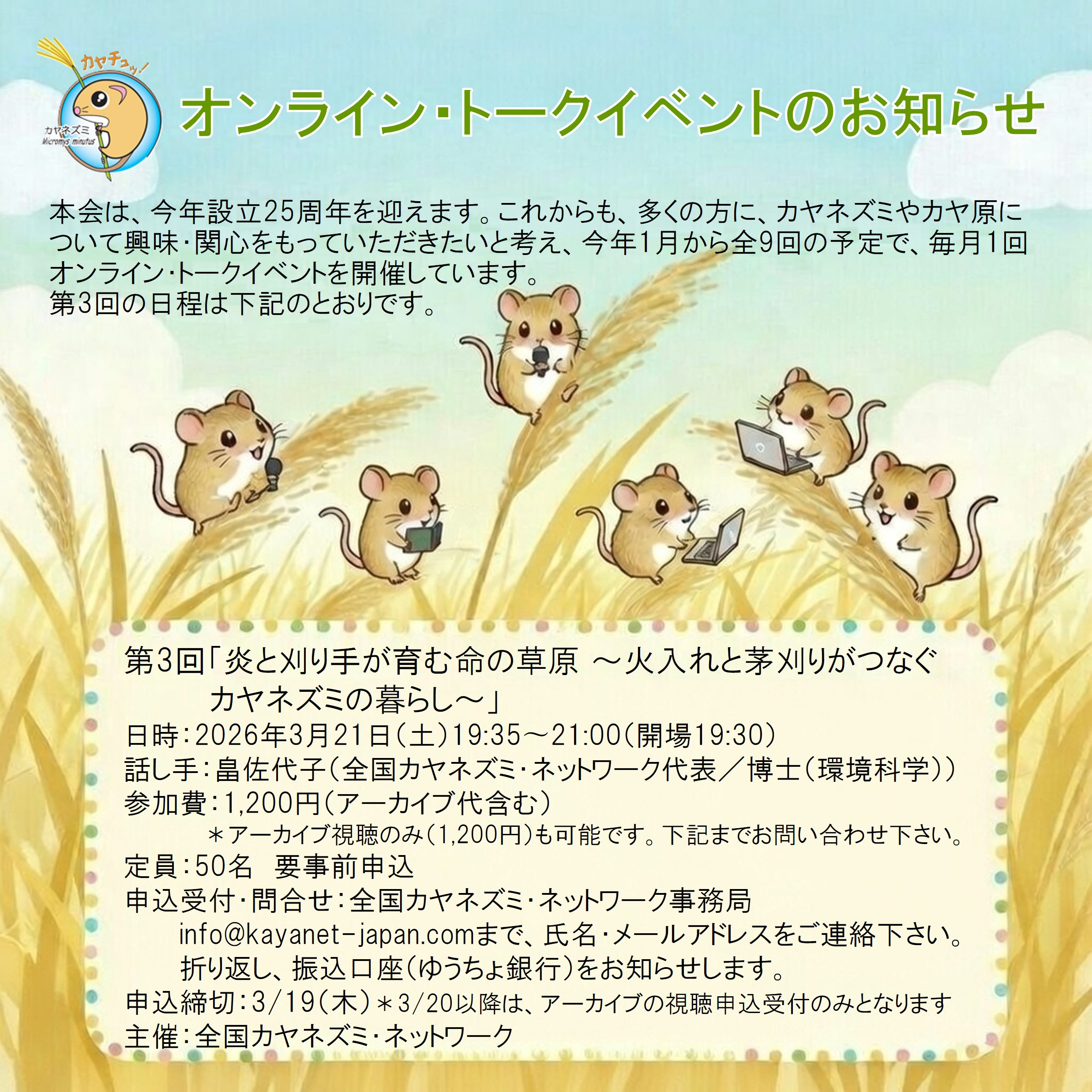 申込受付・問合せ:全国カヤネズミ・ネットワーク事務局 info@kayanet-japan.com