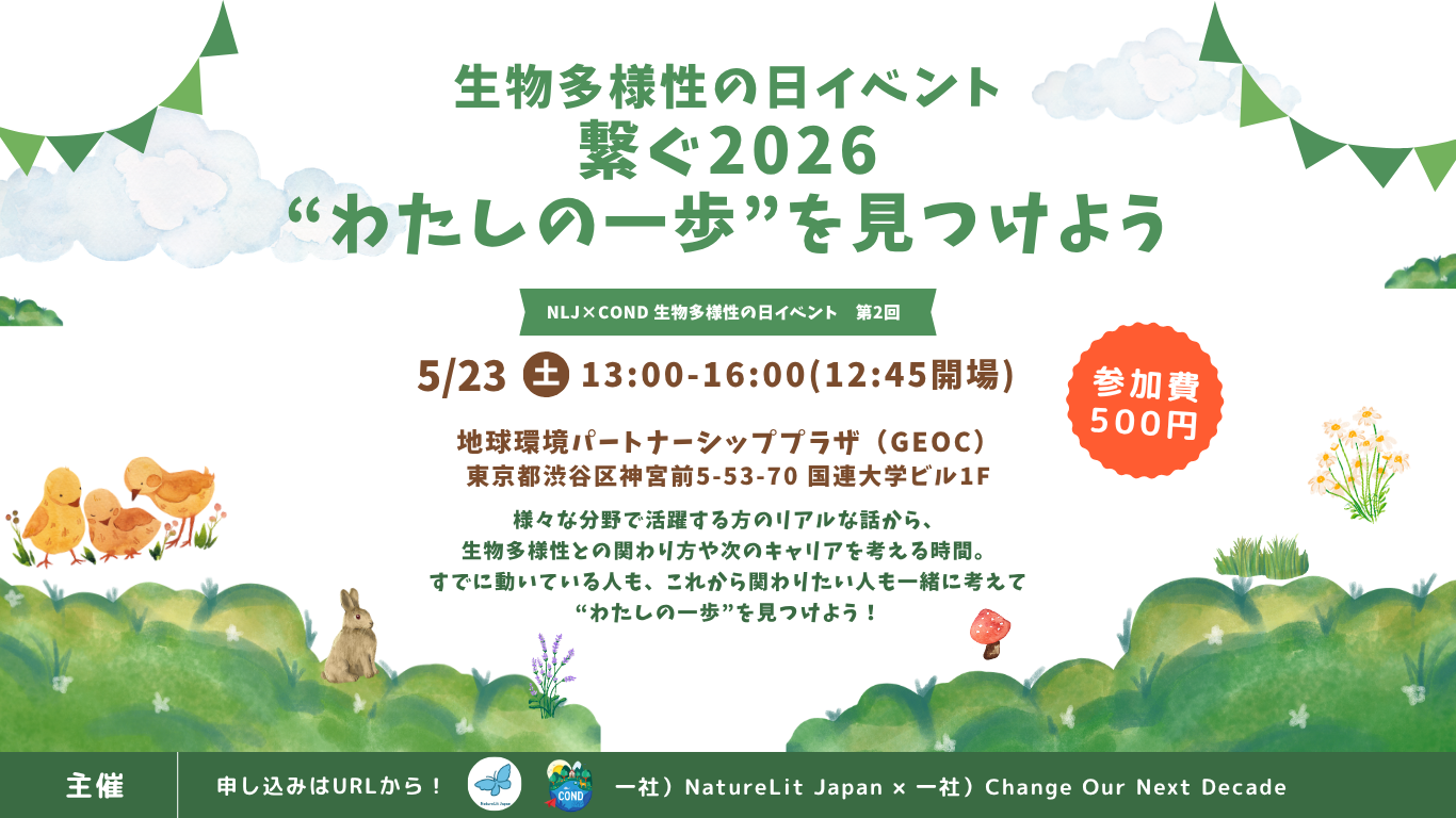 国際生物多様性の日(5/22)を記念して、「生物多様性の日イベント:繋ぐ2026 “わたしの一歩”を見つけよう」を開催いたします!